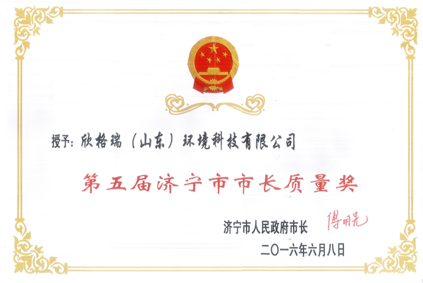 2016年06月,榮獲濟(jì)寧市第五屆“市長(zhǎng)質(zhì)量獎(jiǎng)”。