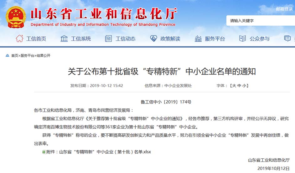 2019年10月,獲評(píng)山東省“專精特新”中小企業(yè)。
